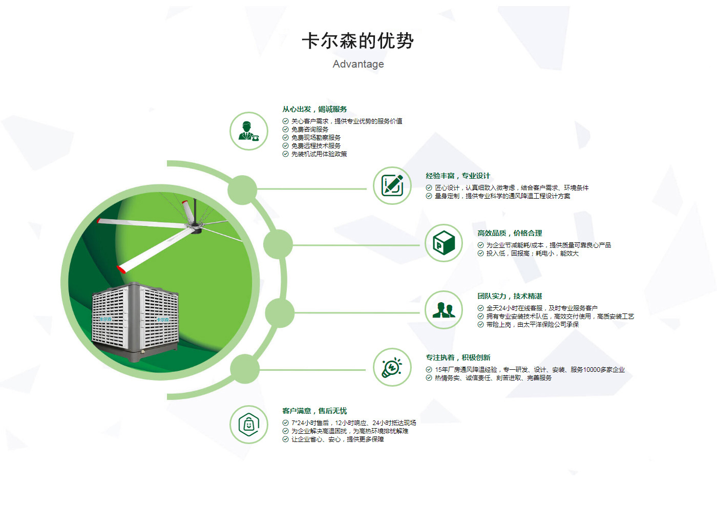 ??晉江市卡爾森機電設備有限公司是一家集設計、制作、銷售、安裝工業(yè)通風設備、中央空調(diào)、節(jié)能環(huán)保空調(diào)、脈沖除塵設備、環(huán)境凈化工程、等環(huán)保工程企業(yè)。并提供環(huán)境影響評價、環(huán)保工程總承包、環(huán)保工程設計、環(huán)保工程運營、環(huán)保工程成套設備等一站式服務。公司一直誠心服務于工業(yè)廠房的通風設施,我們的產(chǎn)品:“品種齊全、質(zhì)量優(yōu)越”。根據(jù)客戶的需求精心設計,高質(zhì)量的制造,力求使每個產(chǎn)品都達到合理耐用、節(jié)能環(huán)保。科學的設計和精美高品質(zhì)的產(chǎn)品,完善的服務系統(tǒng),加強售前、售中、售后服務,對顧客在使用商品中出現(xiàn)的各種問題及時解決,使顧客無后顧之憂。產(chǎn)品廣泛適用于各類型制造業(yè)、機械類、五金冶煉、食品、化工、電子、紡織、噴涂、娛樂以及服務等場所。我們秉承“質(zhì)理過關、價格合理、交期準時、服務周到”而受到新老客戶的好評和信賴。我們堅持“客戶至上、質(zhì)量上乘”為宗旨,努力工作,為您換來潔凈美好的明天。卡爾森愿以過硬的質(zhì)量,良好的信譽同各界朋友一起開創(chuàng)更加輝煌的未來。